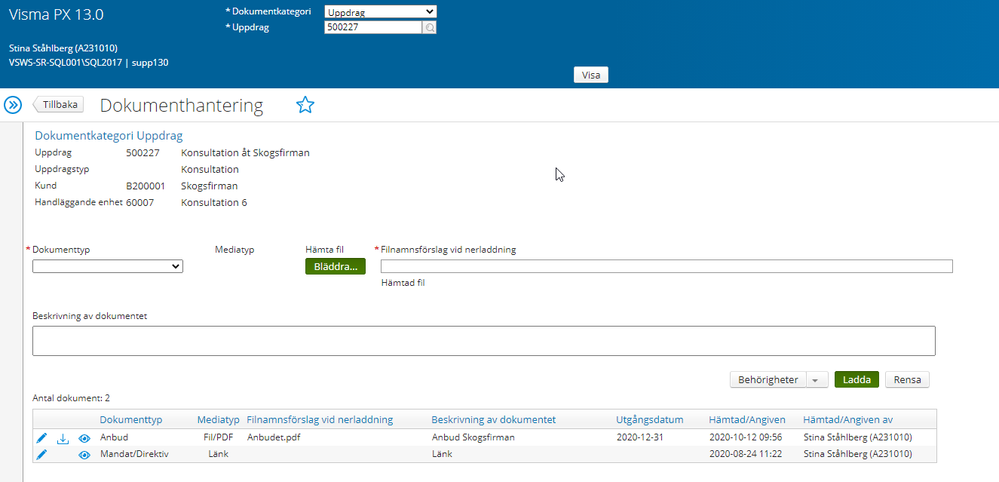 Om uppdragsledare, chefer och andra tar för vana att lagra sina filer för planer, kalkyler, information etc. som dokument i PX på respektive uppdrag, kund, anställd, enhet osv blir det inga problem när någon slutar eller när någon ny tillträder.  Även MS project planer kan lagras här.