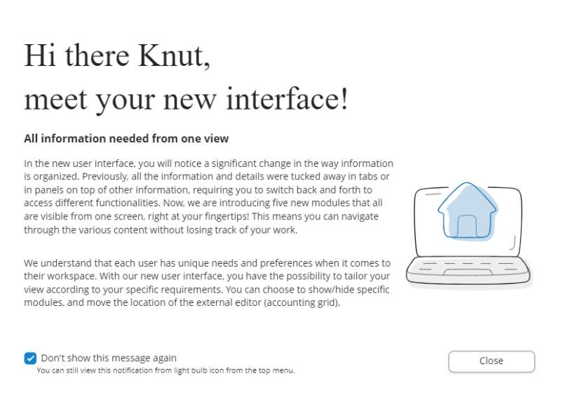 Det finns en ny ikon som visar att du snart eller har fått tillgång till nya gränssnittet. Här kan du läsa mer detaljer om nya funktionen och vi återkommer med mer detaljerad information.