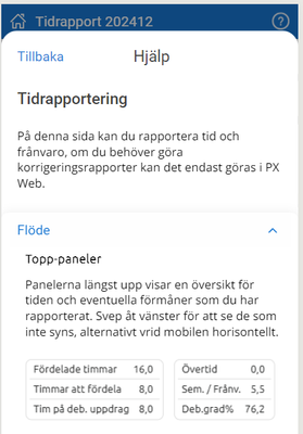 Inne i Visma PX Mobile finns det ett frågetecken längst upp till höger på varje sida.