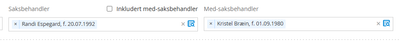 Eksempel: Hvis du legger inn en spesifikk saksbehandler både som saksbehandler og medsaksbehandler, vil du sannsynligvis få 0 treff. Dette skyldes at de fleste barn vanligvis ikke har samme person som både saksbehandler og medsaksbehandler.