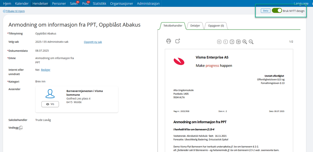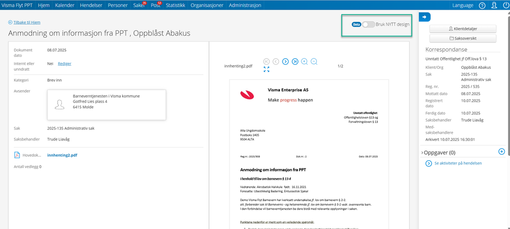 I dag skrur vi på en betaversjon av den nye siden hvor dere kan velge å gå i mellom ny og gammel korrespondanse-side.