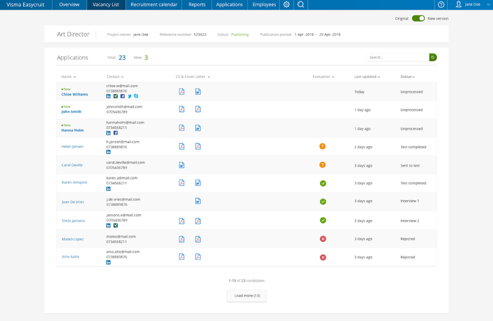 I den första versionen av den nya kandidathanteringen kommer även en ny vy för kandidaternas ansökningar. Där kommer du ha möjlighet att: