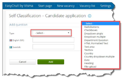 - Kandidaten kommer att kunna spela in en viss tid (förväntat 30 sek – 1 min) per fråga