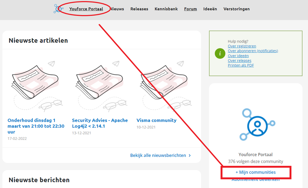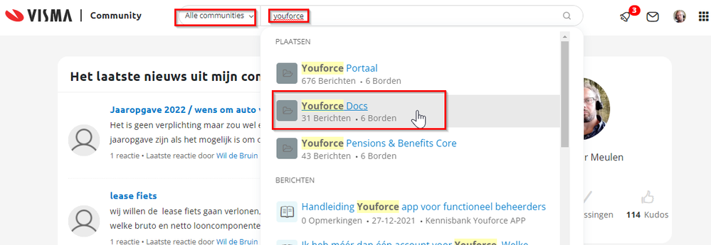 - Na de selectie van die community klik je vervolgens op '+ Mijn communities' aan de rechterkant om deze community toe te voegen.