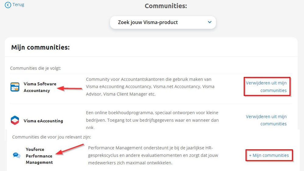 - Je kunt er voor kiezen om communities te verwijderen die je niet gebruikt en communities toe te voegen als ze interessant voor je zijn.