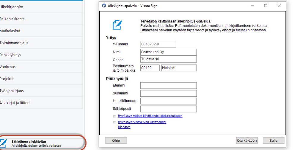 Sähköinen allekirjoituspalvelu otetaan käyttöön seuraavasti:
