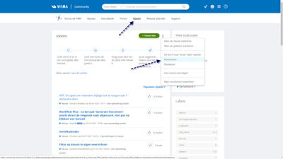 Met de status Nieuw actief zie je alleen de nieuwe ideeën. Klik op de drie bolletjes.