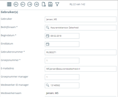 Wanneer een manager een nieuw contract ontvangt en wordt gekoppeld aan een of meerdere organisatorische eenheden in HR Core, wordt er een nieuw eindgebruiker record aangemaakt in Self Service. Er wordt een nieuw Eindgebruiker regel aangemaakt en ingevuld met de nieuwe feitelijke informatie: