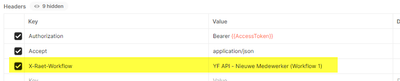 De header X-Raet-Workflow stuurt welke workflow wordt gestart.