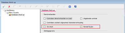 Aan systeemfunctie 999520 (Database check-up) zijn onder de sectie 'Dienstverbanden' twee nieuwe opties toegevoegd: