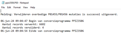 Wat betreft het verwijderen van de overbodige P01455/P01456 mutaties: deze functie hoeft slechts eenmalig te worden uitgevoerd. Hiermee worden alle bestaande overbodige P01455/P01456 mutaties opgeschoond. Nieuwe overbodige mutaties zullen niet meer ontstaan doordat we de programmatuur hier op hebben aangepast.