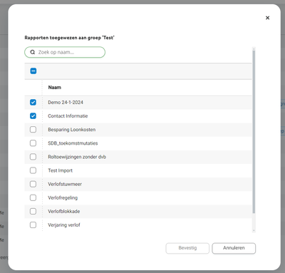 Tot vandaag kon je niet in 1 oogopslag zien welke rapporten waren toegewezen aan de autorisatiegroep. Om te zien welke rapporten waren toegewezen moest je alle rapporten langsgaan en bekijken welke wel of niet geselecteerd was. Dit is nu aangepast, zodat alle geselecteerde rapporten bovenaan staan: