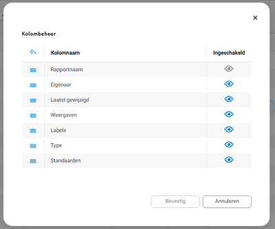 Op dit scherm kun je de volgorde van de kolommen aanpassen en je kunt ze in of uitschakelen: