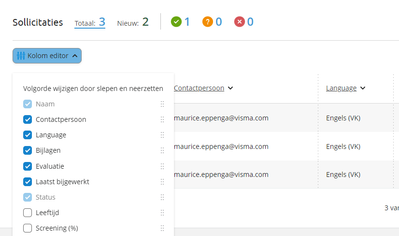 We hebben een nieuwe kolom toegevoegd aan de kolom editor in de het kandidatenoverzicht. Deze kolom heet ‘Taal’ (Language) en kan nu gebruikt worden in het nieuwe kandidaten management. Dit geeft informatie over de taal waarin de kandidaat heeft gesolliciteerd.