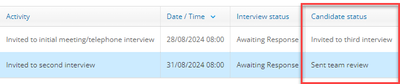 Om het duidelijker te maken bij het openen van het groepsbeoordeling overzicht op de kandidaten pagina van de vacature, hebben we de kandidaat status als een nieuwe kolom op de pagina toegevoegd.
