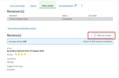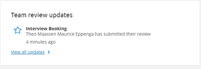 Wanneer gebruikers hun eigen beoordeling toevoegen in het kandidatenprofiel, wordt deze nu weergegeven in de groepsbeoordeling widget op de startpagina, samen met de updates van het externe groepsbeoordeling platform.