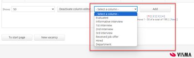 Bij het openen van de vacaturelijst pagina kun je nieuwe kolommen aan de pagina toevoegen door de kolombewerker te activeren. Dit geeft gebruikers veel extra opties om hun weergave aan te passen. De nieuwe beschikbare kolommen zijn:
