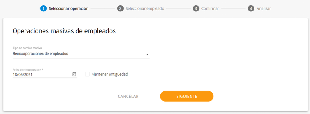 Esta opción consiste en realizar la acción contraria a la baja. En este caso, se da de alta a un grupo de empleados desincorporados previamente.