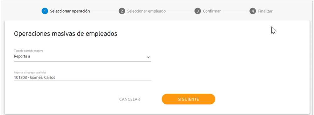 La acción de “Reporta a” está pensada para la asignación rápida de un supervisor a varios empleados.
