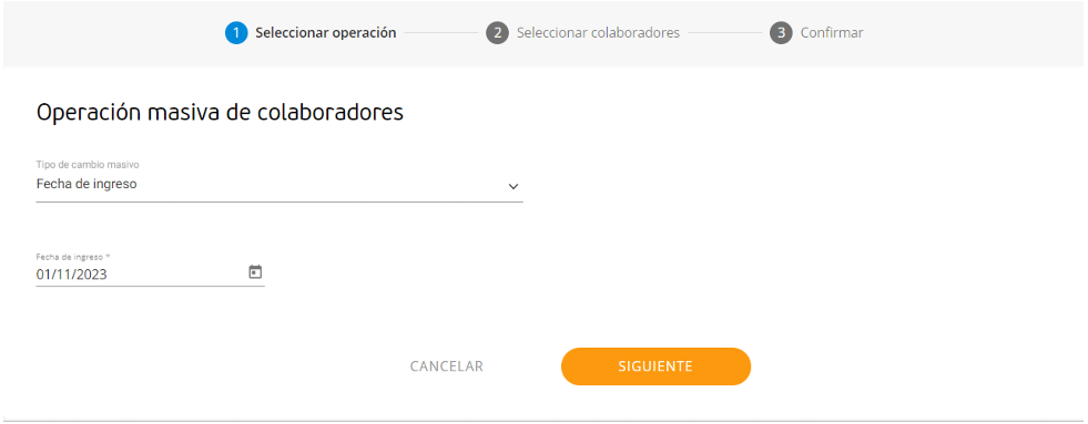 Esta opción nos permite modificar la fecha de ingreso a uno o varios colaboradores a la vez.