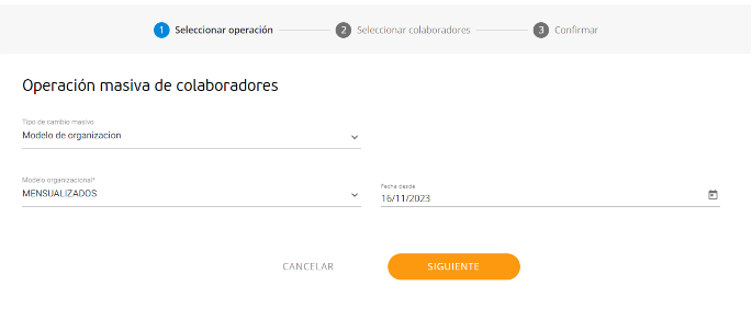 La última acción, permitirá asignar a uno o varios colaboradores un modelo organizacional a partir de una fecha determinada.