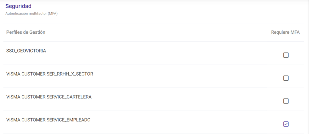 Nota: Es posible activar el MFA sobre el perfil Empleado. Al realizar este ajuste ningún colaborador podrá desactivar dicha funcionalidad.