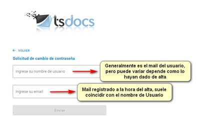 1) Ingresamos a la plataforma de TsDocs desde https://www.tsdocs.com.ar y hacemos clic sobre la opción ¿Olvidaste tu contraseña?.