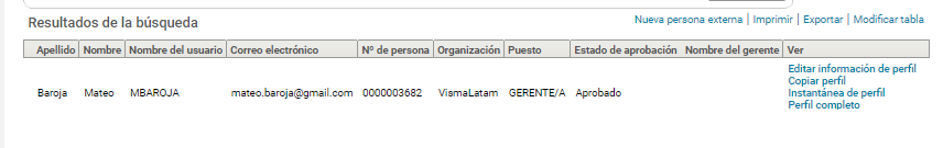 Luego de cargar el archivo CSV en Talento, verificaremos que los usuarios se insertaron correctamente