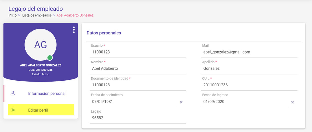 Una vez localizado el usuario se deberá ingresar a su legajo haciendo un clic sobre el registro.