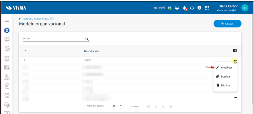 Desde People> Organización> Modelo organizacional> seleccionar los tres puntitos del modelo que corresponda y hacer click en ‘Modificar’: