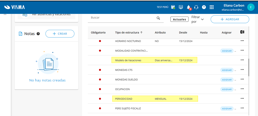 Esto aplicará sólo cuando la carga sea manual o por interfaz y la misma ya contemple dentro de su modelo organizacional el atributo del modelo de vacaciones ya asignado por defecto. De lo contrario, deberá asignársele el atributo del tipo Modelo de Vacaciones que le corresponda.