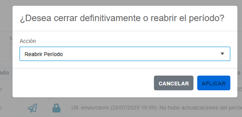 Reabrir el período, si necesitás hacer ajustes, presionando nuevamente el candado.