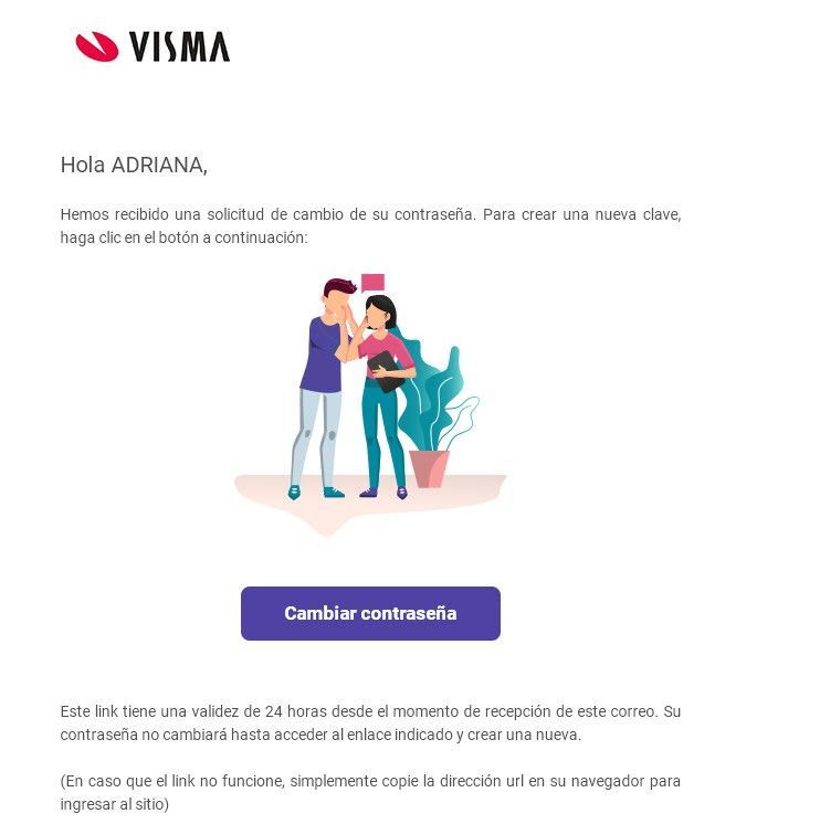 3) El usuario recibirá un correo electrónico que le permitirá blanquear su clave. Para avanzar con el proceso se deberá hacer clic sobre el botón Cambiar Contraseña.