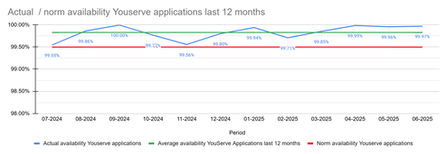 Woensdag 13 november 15:45 uur De verlof functie in de YouServe app is weer aangezet voor alle klanten die dit voor afgelopen donderdag ook actief hadden. Het kan zijn dat je de app even helemaal moet sluiten (niet uitloggen en niet verwijderen) om de laatste rechten op te halen.   Mochten er nog issues zijn, laat het ons dan via een ticket weten dan kijken we er verder naar. Ook feedback op hoe de functie eruit ziet en of dit verbeterd kan worden is welkom. Excuses voor al het ongemak en dank voor jullie geduld.   Woensdag 13 november 14:30 uur We gaan de verlof functie weer aanzetten in de YouServe app voor alle klanten die dit voor afgelopen donderdag ook hadden. De versies iOS 7.6.3 en Android 7.3.2 verhelpen de problemen die ons vorige week dwongen de functie uit te zetten. Zodra wij de functie voor iedereen hebben aangezet zal ik nog een laatste update doen op community.    Dinsdag 12 november - 18:00 uur Inmiddels is versie 7.6.3 voor iOS beschikbaar in de app stores. We gaan morgen nog met een paar klanten testen alvorens de functie weer beschikbaar te maken voor iedereen waarvoor het tot afgelopen donderdag beschikbaar was. Er zal in de loop van woensdagochtend een nieuwe update volgen.   Dinsdag 12 november - 12:00 uur Over het algemeen lijken de verlofsaldo's en het beschikbare verlofsaldo nu goed door te komen. Op de iPhone hebben we een laatste fout opgelost die nu ter review is aangeboden bij Apple. Hopelijk kunnen we later vanmiddag deze versie (7.6.3) in de app store publiceren en dan verder gaan met het vrijgeven van de functionaliteit.   Dinsdag 12 november - 9:40 uur We hebben gisteren aan het einde van de middag iOS versie 7.6.2 en Android versie 7.3.2 gepubliceerd en zijn nu met een paar klanten aan het controleren of de data klopt en of alle functionaliteit werkt. Zodra we hier positieve feedback op krijgen zullen we verder gaan met het vrijgeven van de verlof functie.   Maandag 11 november - 15:00 uur Voor enkele problemen hebben we een correctie klaar staan die we aan het testen zijn. Zodra dit gedaan is kunnen we een update naar de app stores sturen, de verwachting is dat we deze morgen ochtend kunnen publiceren waarna we verlof voor een selecte groep klanten open gaan zetten zodat we gecontroleerd kunnen testen of de updates werken alvorens de functie voor iedereen open te zetten. De intentie is nu om die eerste fase morgen (dinsdag 12 november) uit te voeren.   Vrijdag 8 november 2024 - 13:00 uur Op dit moment zijn we hard aan het werk met een oplossing voor de issues in de YouServe app. Deze oplossing neemt meer tijd in beslag dan verwacht. We zullen naar verwachting een nieuwe versie live kunnen zetten in het begin van volgende week. Een volgende update volgt op maandagochtend. We willen onze klanten zoveel mogelijk verzoeken om gebruik te maken van de Self-Service module totdat de YouServe app weer beschikbaar is.  Donderdag 7 november - 12:00 uur Helaas hebben we geconstateerd dat de verlof functionaliteit in de YouServe app in een aantal gevallen niet functioneert zoals je het zou mogen verwachten van ons. Het gaat om meerdere issues waarvoor we een structurele oplossing willen implementeren maar daarvoor hebben we wat meer tijd nodig en moeten we ook een nieuwe versie van de app publiceren. Om te voorkomen dat mensen tegen problemen aan blijven lopen zetten we de functie tijdelijk uit. Concreet betekent dit, dat de medewerkers de knop niet meer zien.    Zodra de problemen zijn verholpen zullen we de knop weer zichtbaar maken. Excuses voor het ongemak.   Het YouServe app ontwikkelteam