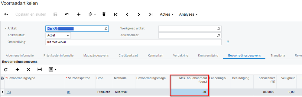 Als je werkt met samengestelde artikelen die een houdbaarheidsdatum hebben, is het mogelijk om deze datum automatisch te bepalen op basis van de productiedatum. Volg deze stappen om automatisch de houdbaarheidsdatum te berekenen bij het assembleren van deze artikelen.