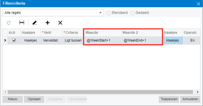 Startdatum van de huidige week. Het is mogelijk om te rekenen met parameters, door simpelweg optellen en aftrekken (zie illustratie voor een vervaldatum volgende week). |