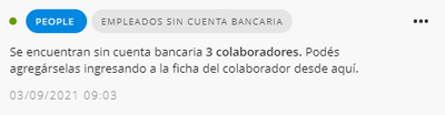 Implementamos un nuevo tipo de notificación para que en caso de activación, informe al usuario sobre aquellos colaboradores que no posean una cuenta bancaria configurada.
