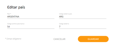 Ahora se permite modificar, desde configuración básica, los códigos de los países asociados a bancos u otras relaciones, para su utilización en reportes legales, acreditaciones bancarias u otras funcionalidades.