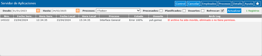 La funcionalidad del Servidor de Aplicaciones de la versión anterior de Visma fue reemplazada por el Monitor de procesos, por lo que ahora redirecciona a esta nueva herramienta mejorada accediendo al estado de los procesos y ejecuciones de APIs.