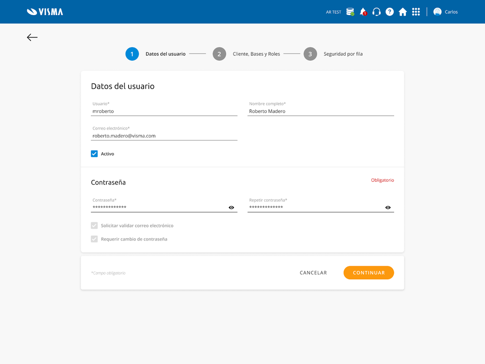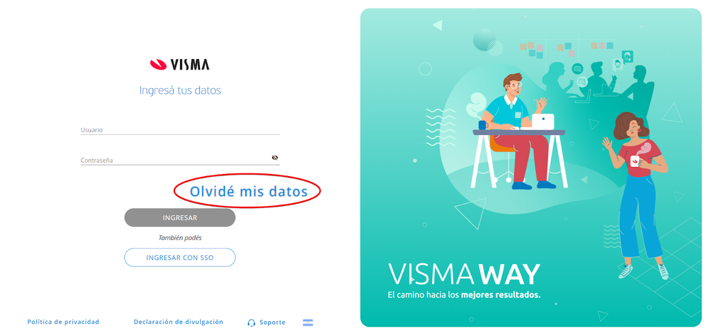 Ahora, los usuarios solo pueden cambiar su propia contraseña desde su perfil personal, en la opción "Mis preferencias" del menú "Seguridad", o desde VLCM en los datos del usuario. Si olvidó tu contraseña, puede recuperarla desde la pantalla de inicio de sesión con la opción "Olvidé mis datos".