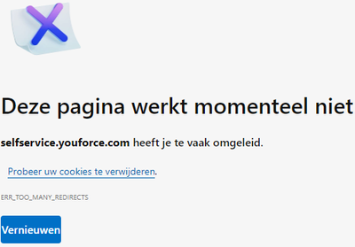 @Katinka te Booy Hier schijnt voor zover ik bemerk alles te werken behalve Youforce account beheer. Hier krijg ik nog steeds een melding  Ik heb hier voor een ticket aangemaakt