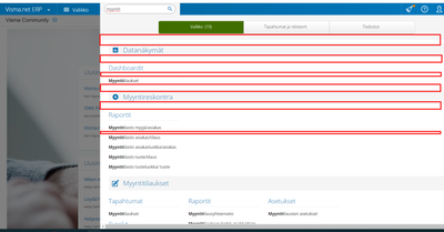 Yläpalkin haun tulosnäkymään tulisi saada enemmän tietoja näkyville ilman pystyvierityspalakin käyttöä. Nyt näytöllä on aivan liian suuret rivivälit, jonka vuoksi iso osa tuloksista jää tyypillisesti piiloon.
