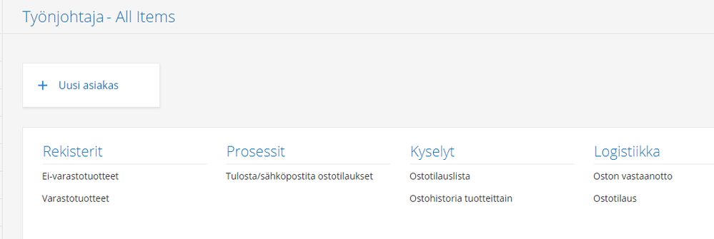 Huom! Jos pääkäyttäjä lisää jälkikäteen jonkin toiminnon pikavalikkoon, tulee se näkymään kaikille käyttäjille näytön virkistyksen jälkeen.