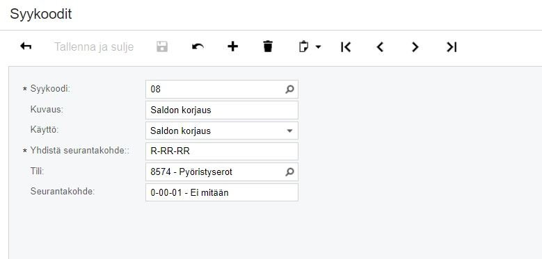 Avaa Myyntirskontra | Rekisterit | Asiakkaat ja valitse ko. asiakas. Yleiset tiedot-välilehdellä, tarkista että 'Saldokorjausten kirjaus käyttöön' on valittu.