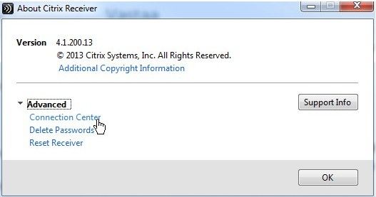 Etsi sieltä Citrixin kuvake (musta laatikko jossa valkoisia aaltoviivoja). Klikkaa siitä hiiren oikealla ja paina About: