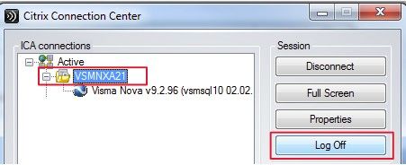Virhettä tulee yleensä silloin, jos Citrix ei ole sammunut asianmukaisesti, esim. jos Novasta ei ole menty pois Tiedosto > Lopeta ja kirjaudu ulos -toiminnolla.