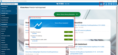 Nova 10.5 versiosta lähtien päivitykset ladataan Infolinen Lataukset-painikkeen kautta. Päivityksen tekeminen jatkossa siis virtaviivaistuu.