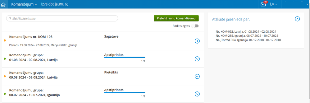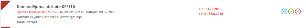 Komandējumu atskaiti iespējams saskaņot no uzdevumu saraksta pa vienai vai vairākas uzreiz: