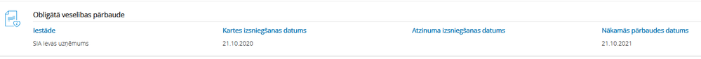 Darbinieki var redzēt sev aktuālo obligātās veselības pārbaudes informāciju sadaļā “Darba dati”.