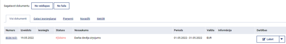 Ja vispirms tiek veikta darbība "Nosūtīt" un pēc tam "Nosūtīt un iesniegt", EDS sistēmā būs 2 ieraksti šai atskaitei, jo katru reizi, veicot darbību "Nosūtīt", EDS vidē tiek izveidots jauns dokuments.